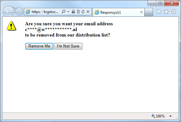 ...om vervolgens op een afmeldpagina terecht te komen die er nog spammiger uitziet dan de mailing zelf. Oh yes, I'm sure!