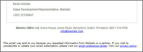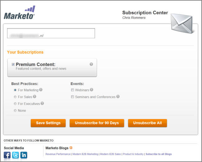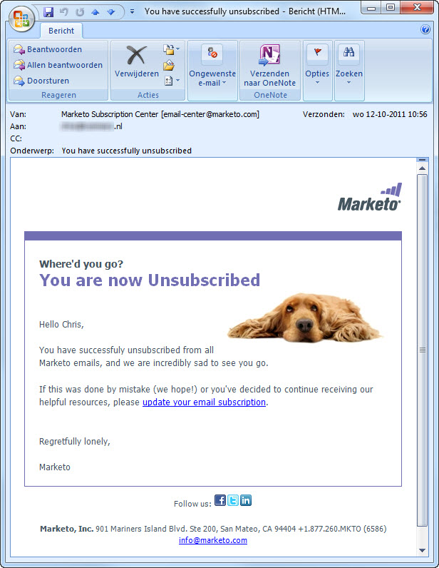 Marketo is gespecialiseerd in "marketing automation". Ik was wel benieuwd hoe zo'n specialist met afmeldingen omgaat.