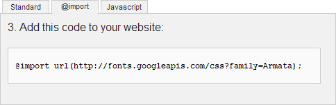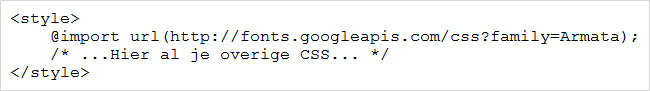 Vervolgens kun je het lettertype Armata in je CSS gaan toepassen, bijvoorbeeld als volgt (waarbij we ervoor kiezen om het gangbare Arial als ‘back up’ te gebruiken):