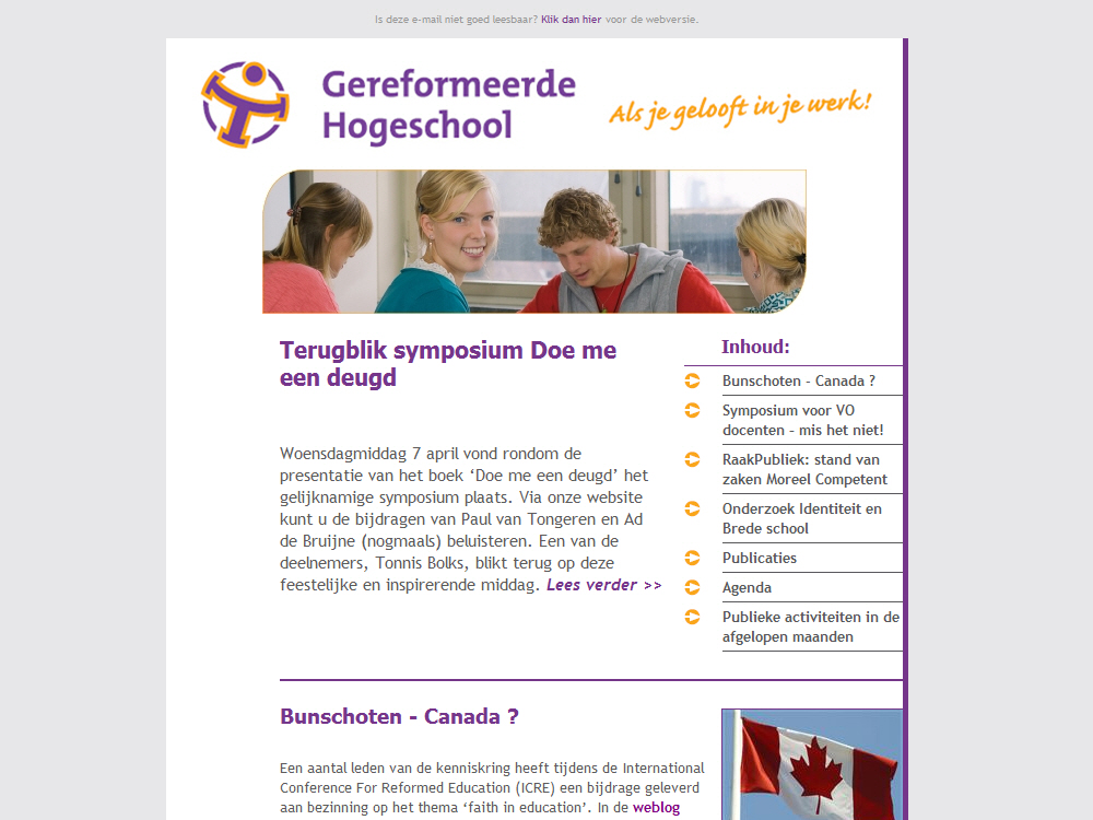Iedereen kan met WebGenenerator ProMail een mooie, professionele email nieuwsbrief maken. Ook deze opdrachtgever koos voor onze oplossing voor het versturen van haar nieuwsbrief. ProMail laat niets aan het toeval over: u haalt meer uit uw e-mail marketing!