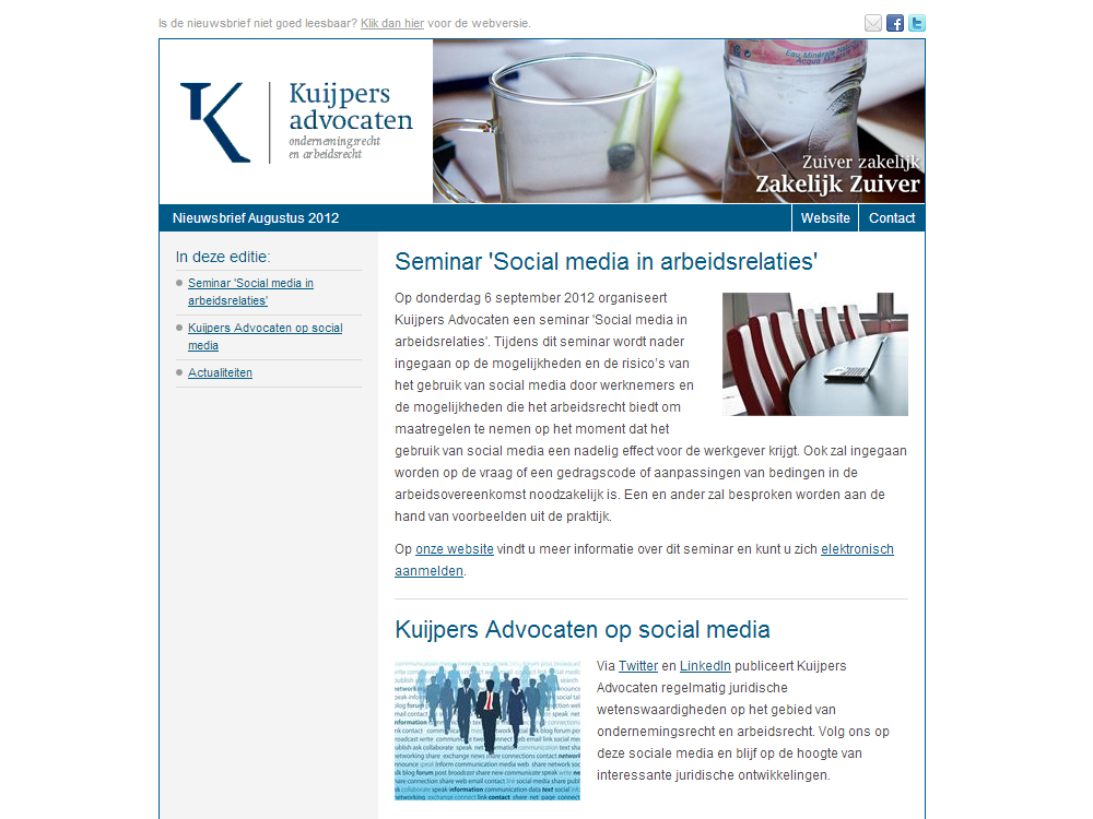 Iedereen kan met WebGenenerator ProMail een mooie, professionele email nieuwsbrief maken. Ook deze opdrachtgever koos voor onze oplossing voor het versturen van haar nieuwsbrief. ProMail laat niets aan het toeval over: u haalt meer uit uw e-mail marketing!