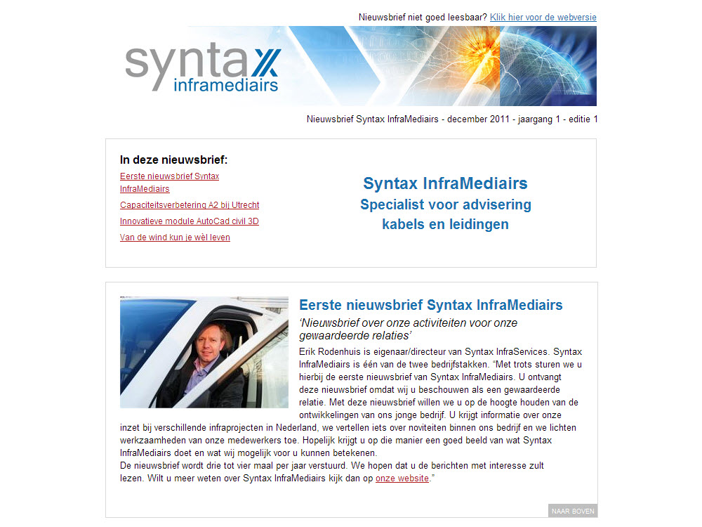Iedereen kan met WebGenenerator ProMail een mooie, professionele email nieuwsbrief maken. Ook deze opdrachtgever koos voor onze oplossing voor het versturen van haar nieuwsbrief. ProMail laat niets aan het toeval over: u haalt meer uit uw e-mail marketing!