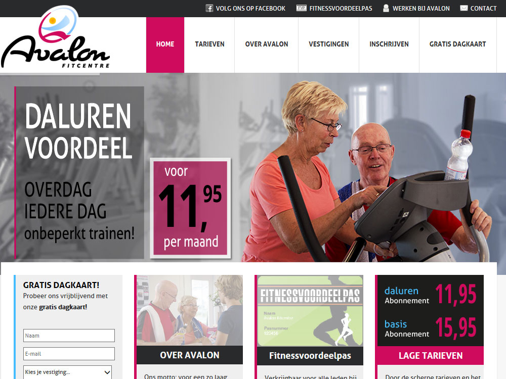 Sportschool Avalon Fitcentre heeft vestigingen in Nijmegen en Duiven. Goede vindbaarheid in Google en sterke focus op conversie waren belangrijke aandachtspunten bij de ontwikkeling van deze responsive WordPress-website op basis van een door WebGenerator geselecteerde theme. Een goede sitestructuur, verbetering van domeinverwijzingen en geoptimaliseerde content zorgen nu voor hoge posities op belangrijke zoektermen. Het aantal 'trials' in de vorm van gratis dagkaarten is gestegen en een uitgebreid online inschrijfformulier zorgt voor minder administratieve belasting van het personeel in de vestigingen.