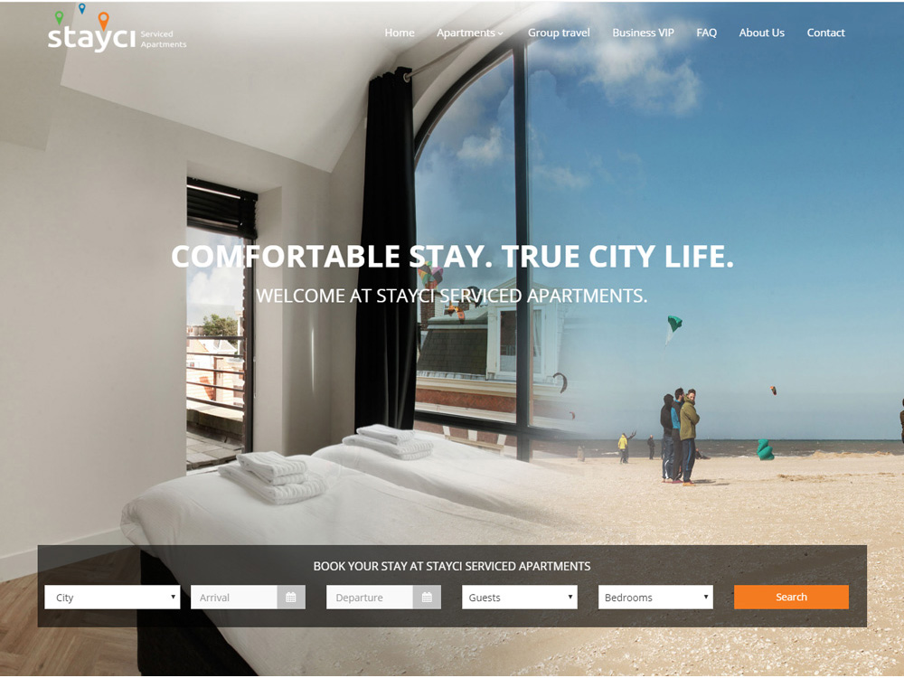 Stayci Shortstay City Apartments verhuurt en intermedieert short stay appartementen in Rotterdam en Den Haag. In korte tijd en binnen een bescheiden budget realiseerde WebGenerator een aantrekkelijke website in WordPress waarop Stayci haar appartementenaanbod eenvoudig en snel kan presenteren. De appartementen-weergave werd voorzien van een filtermogelijkheid op soort appartement en eenvoudig informatieformulier voor bezoekers.