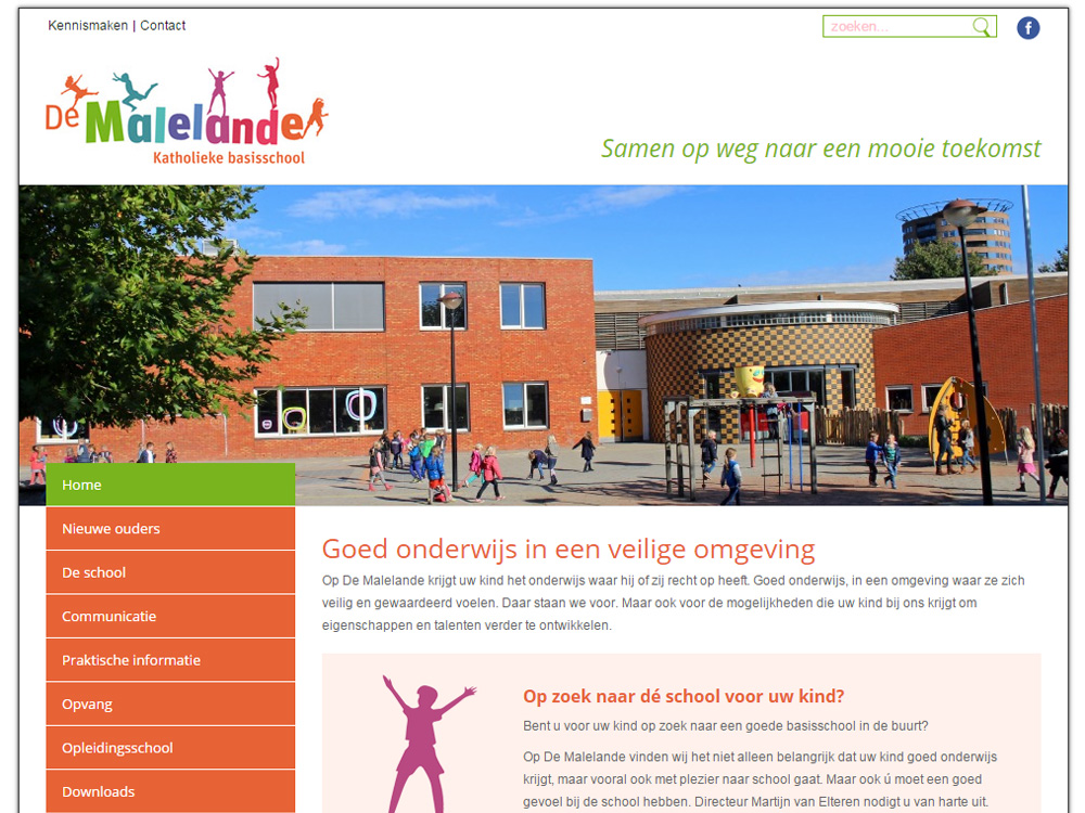 Basisschool De Malelande in Amersfoort zocht naar een goede en betaalbare oplossing ter vervanging van haar bestaande website. Met drie vestigingen gesitueerd in de grote Vinex-wijk Nieuwland, begon de school te merken dat de website wat meer op werving gericht moest zijn dan in het verleden het geval was. De wens was dan ook een niet al te complexe, maar wel duidelijk gestructureerde website om ouders van bestaande leerlingen, maar zeker ook ouders van mogelijk nieuwe leerlingen te informeren. We bouwden de website op basis van WordPress en onze eigen flexibele Jumpstart theme. De initiële content werd geplaatst door onze partner Toet Communicatie, waarna een medewerker van Basisschool De Malelande een persoonlijke WordPress-training kreeg om het beheer verder ter hand te nemen.