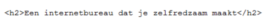 Het volstaat dus niet om koppen alleen visueel op te maken (dus bijvoorbeeld groter, vet en in een ander lettertype), er moeten heading tags omheen staan. In de HTML-code van je webpagina ziet dat er bijvoorbeeld zo uit: