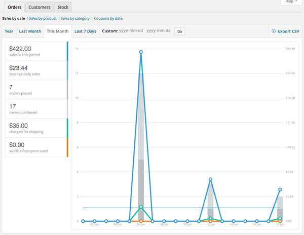 Het WooCommerce platform biedt diverse standaardrapportages.